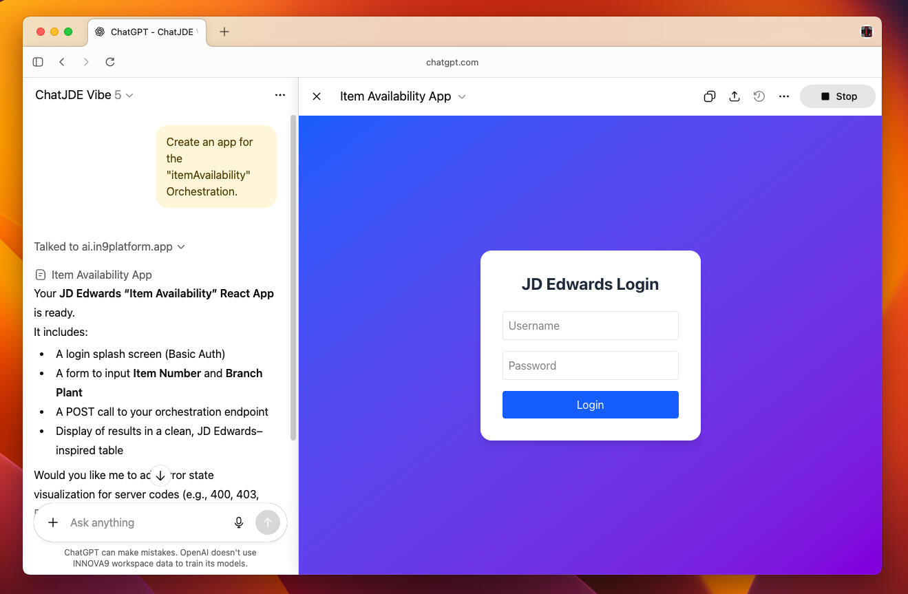 Turn JD Edwards Orchestrations into Apps. Instantly.ChatJDE Vibe is an AI-powered provisioning platform that automatically generates, deploys, and manages applications built from JD Edwards business processes.